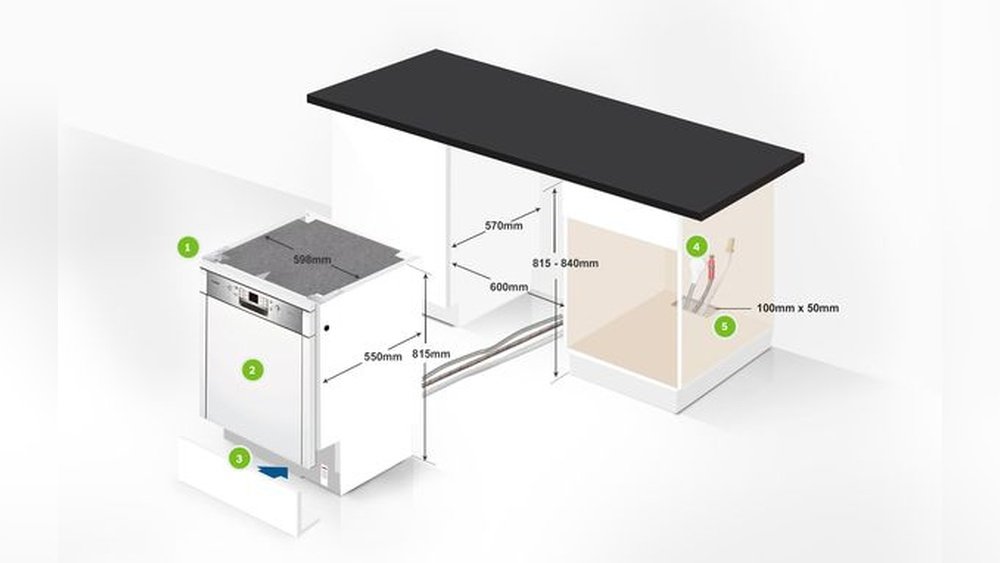 Most Bosch dishwashers are designed to fit under a standard kitchen countertop, with a width of 24 inches for full-size models and 18 inches for slimline versions. Measure the opening to ensure there is enough space. Leave at least 2 inches behind the unit for hoses and electrical cords.