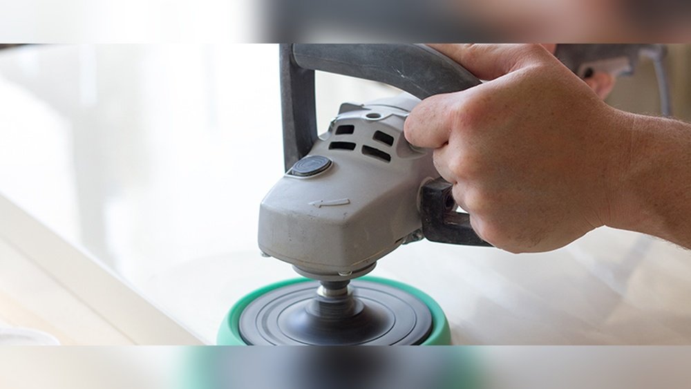 If you are experienced with tools, you can use a variable-speed orbital sander with a marble polishing pad. Work slowly, use the correct grit (usually starting at 800, then 1500, then 3000), and keep the area wet to avoid overheating.
