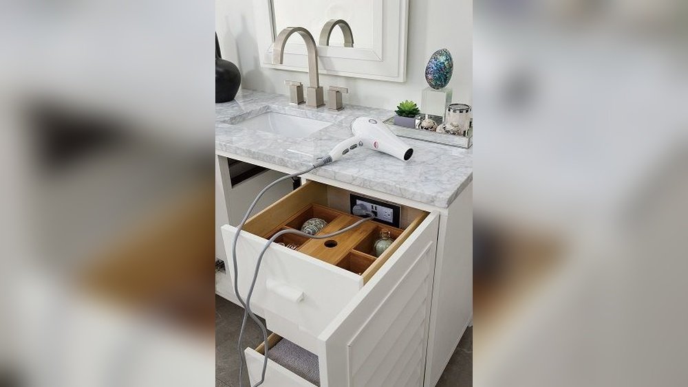 For charging phones or toothbrushes, most top drawers in bathrooms or kitchens work well. For hair dryers, you may want a deeper vanity drawer.